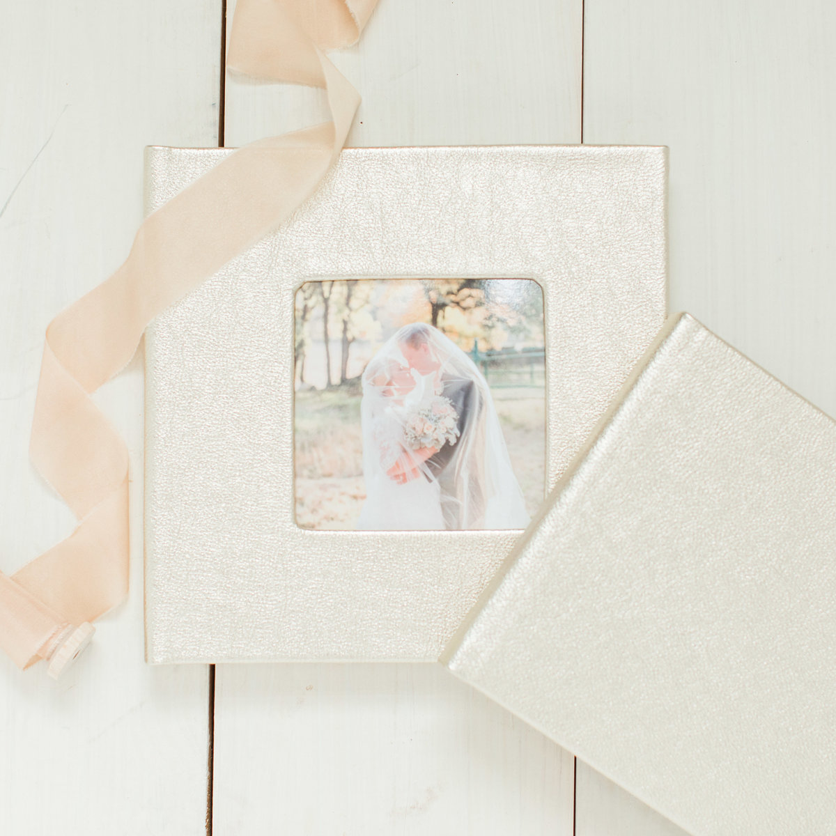 The Bride & Groom album options are in sizes 10x10 and 12x12. The parent albums are 8x8 duplicate leather albums.