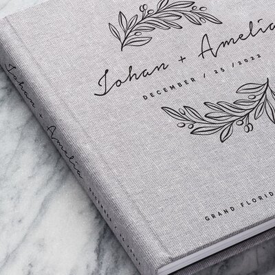 - Your custom design can be printed on the front cover and spine of a Leather, Linen, Suede or Velvet cover in stunning detail. Available in Black and White printing only.